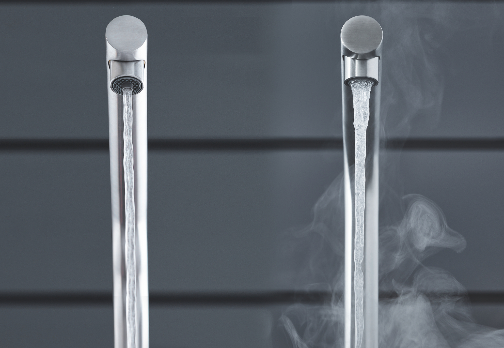 GROHE Red provides boiling water at the push of a button: 100 degrees Celsius hot water, 100 percent safe and easy to operate