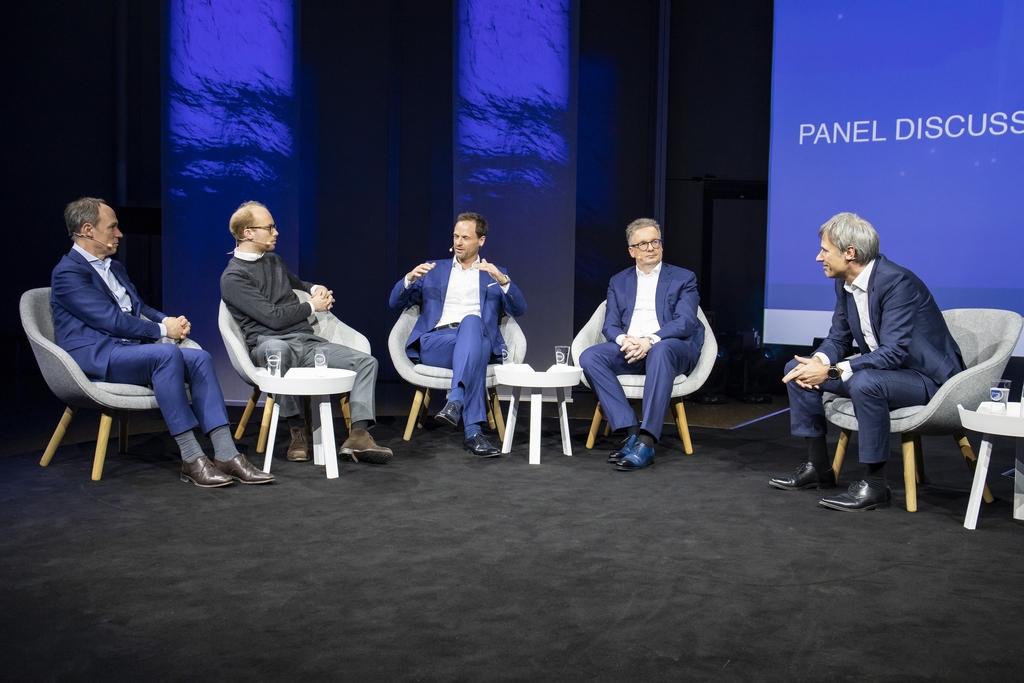 Source: GROHE | Top-class round table during the first Intelligent Living Summit at the ISH 2019 with the following participants (from the left to the right): Christoph Keese, CEO Axel Springer hy GmbH and Keynote Speaker, Max Viessmann, Co-CEO of Viessmann, Axel Kniehl, Executive Director - Marketing and Sales of Miele, Michael Rauterkus, CEO GROHE AG, and Achim Berg, President of Bitkom and moderator (Source: GROHE | 6 years ago) |